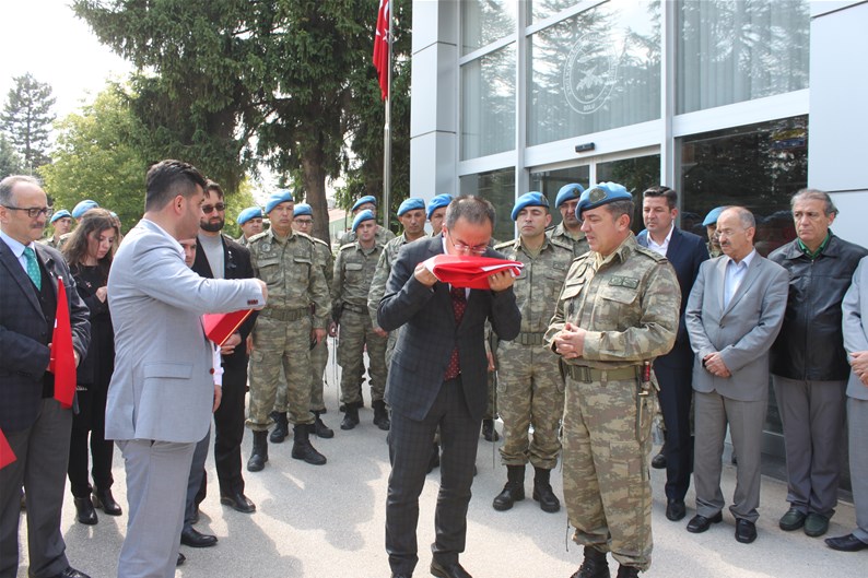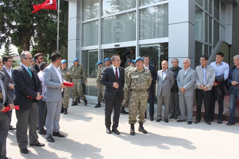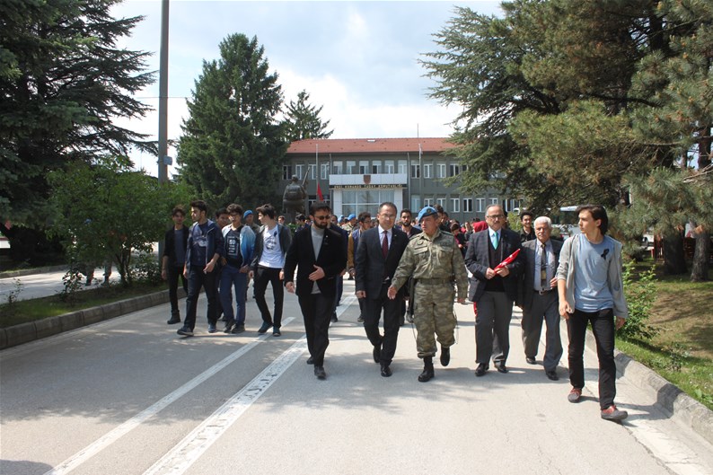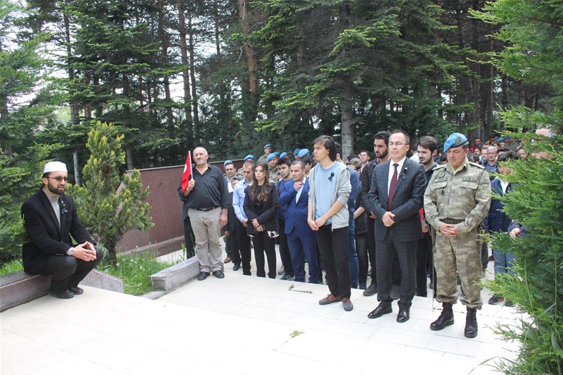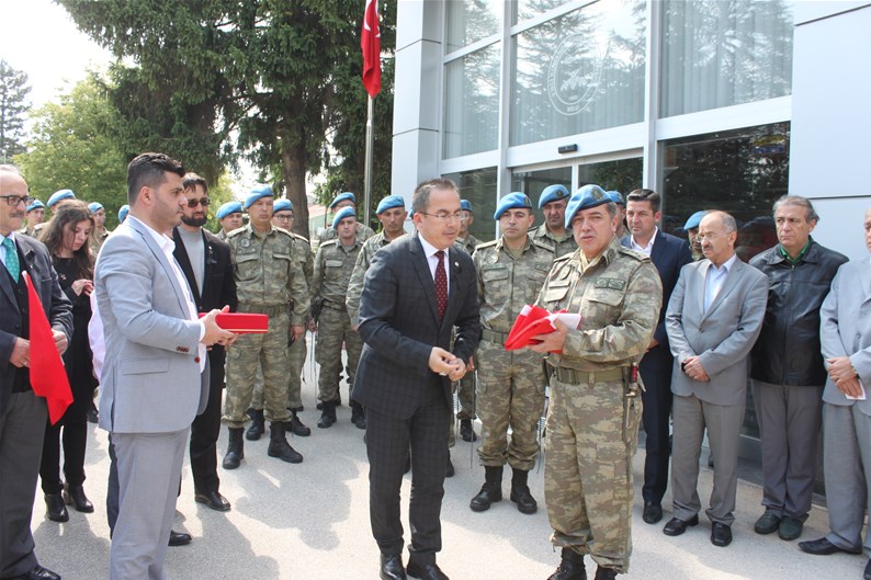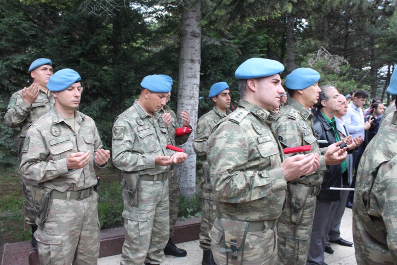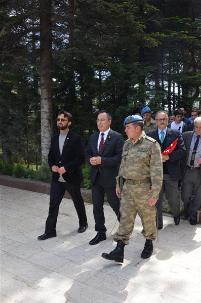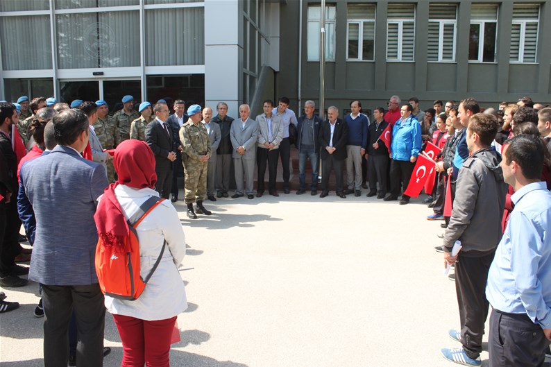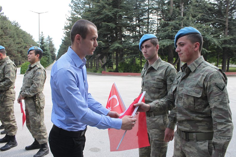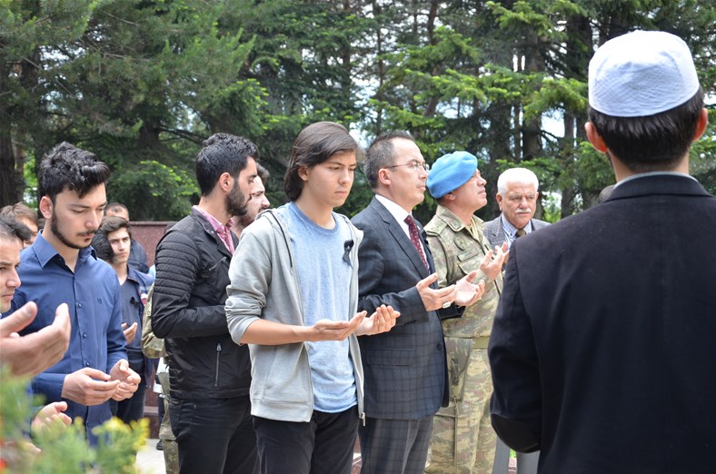 Bolu Gençlik Hizmetleri ve Spor İl müdürlüğümüz tarafından organize edilerek, şehit düşen aziz askerlerimizin anısına Bolu 2. Komando Tugayı’na kurumumuz şube müdürleri, personelimiz ve ilimizdeki okullardan kurum müdürleri ve öğrencileri ile birlikte sayın Kurmay Albay Muammer Alper’i ziyaret gerçekleştirildi. İl müdürümüz sayın Şahin Ertem personelimiz ve tüm gençlerimiz adına sayın Kurmay Albay Muammer Alper’e bayrak takdim etti. Sayın Alper, İl Müdürümüz sayın Şahin Ertem’e ;“Zor günümüzde yanımızda oldunuz metanetimiz artırdınız. Geldiğiniz için teşekkür ederim “diye belirtti. Ardından 353 şehiti temsilen kurulan şehitlikte Şehadet mertebesine erişen şehit askerlerimiz için okunan Yasin-i Şerif’ten sonra toplu dua edildi.